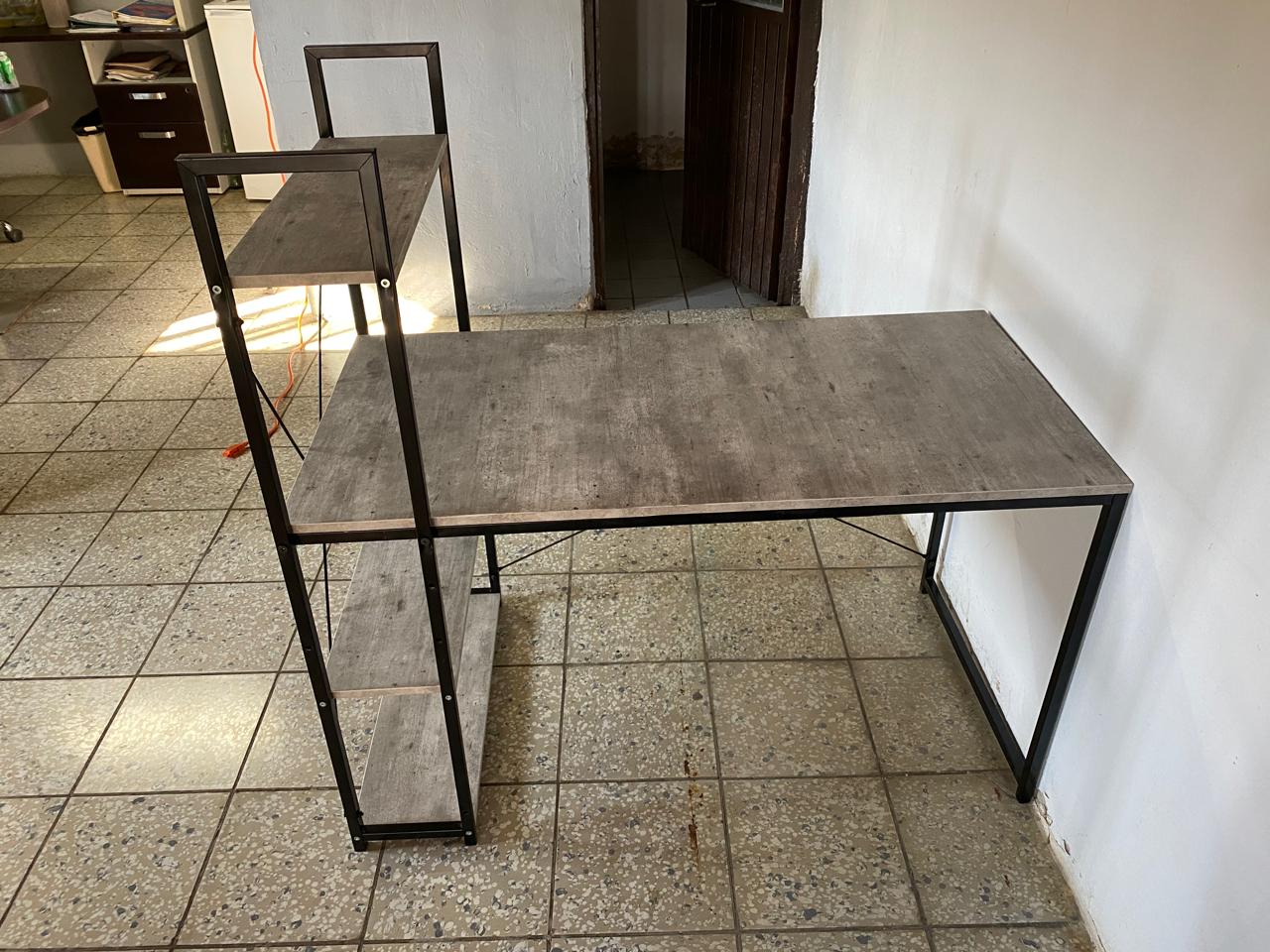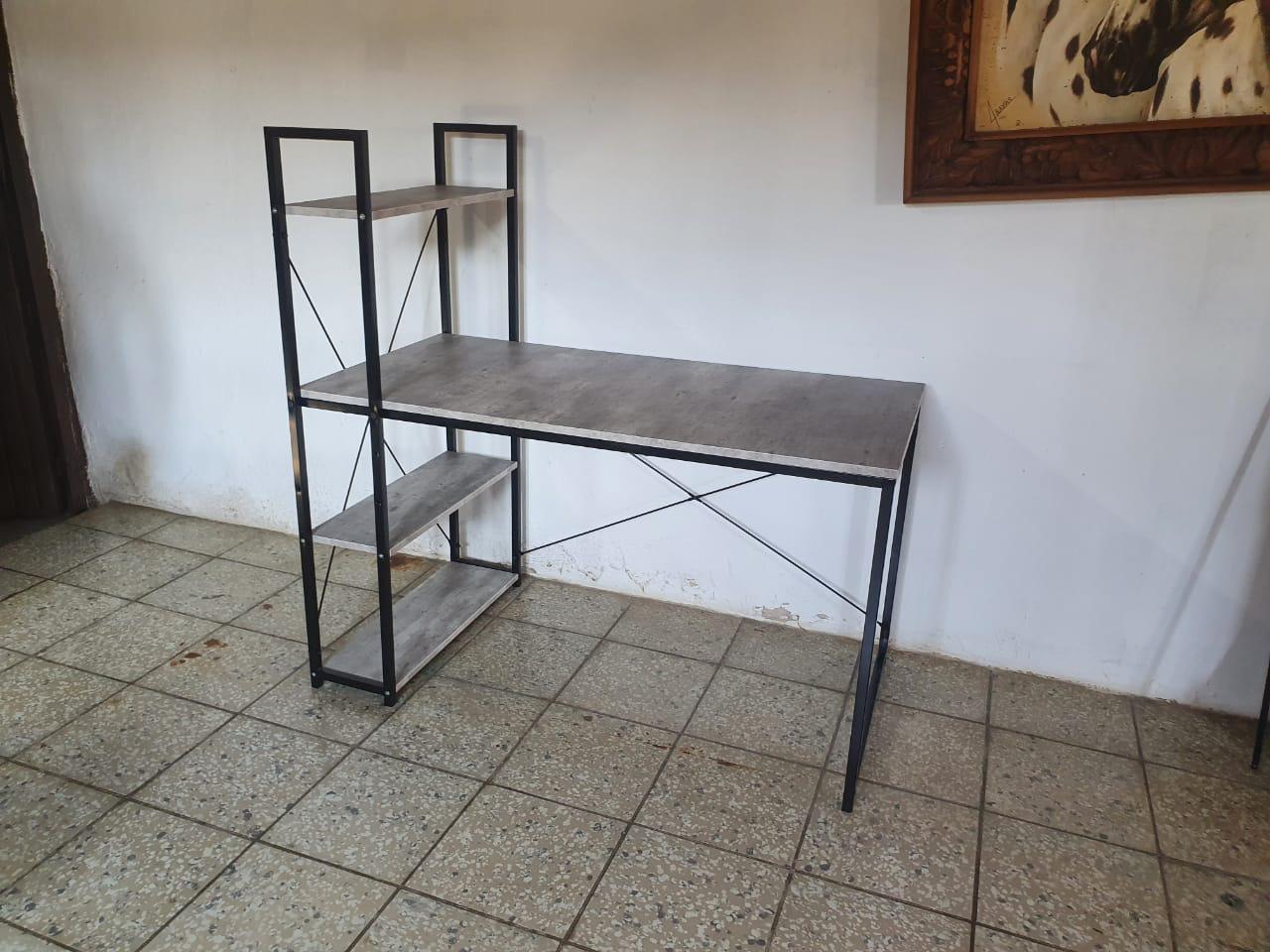 ESCRITORIO CON LIBRERO ESCRITORIO CON LIBRERO DE TUBULAR DE 3/4 Y CUBIERTA Y 3 ENTREPAÑOS DE AGLOMERADO DE MELAMINA