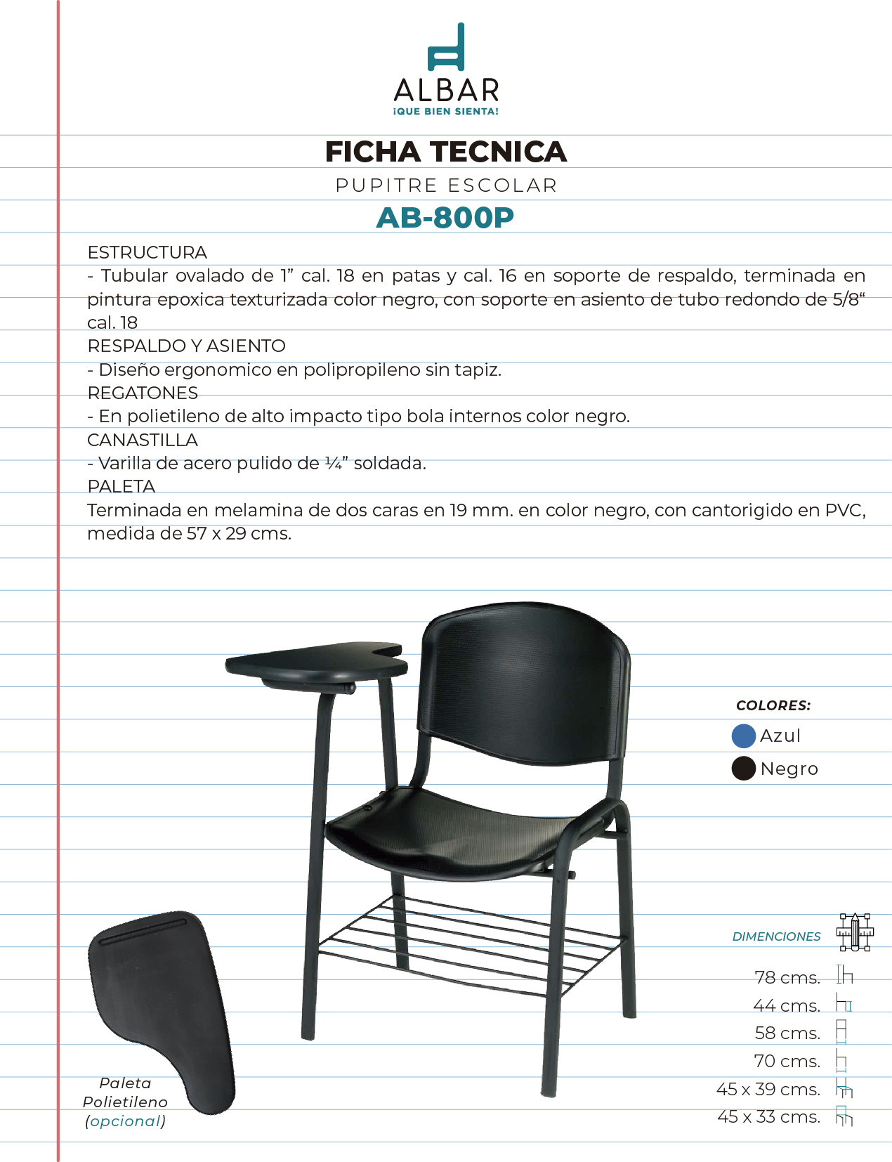 PUPITRE ESCOLAR AB-800P – Rayess Mobiliario