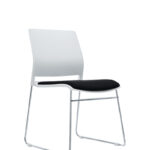 Respaldo y asiento en polipropileno, en colores blanco, gris, negro, amarillo y azul, estructura en cold roll de 1/2”, terminado en cromo, regaton antiderrapante de nylon, para evitar rayaduras en piso.