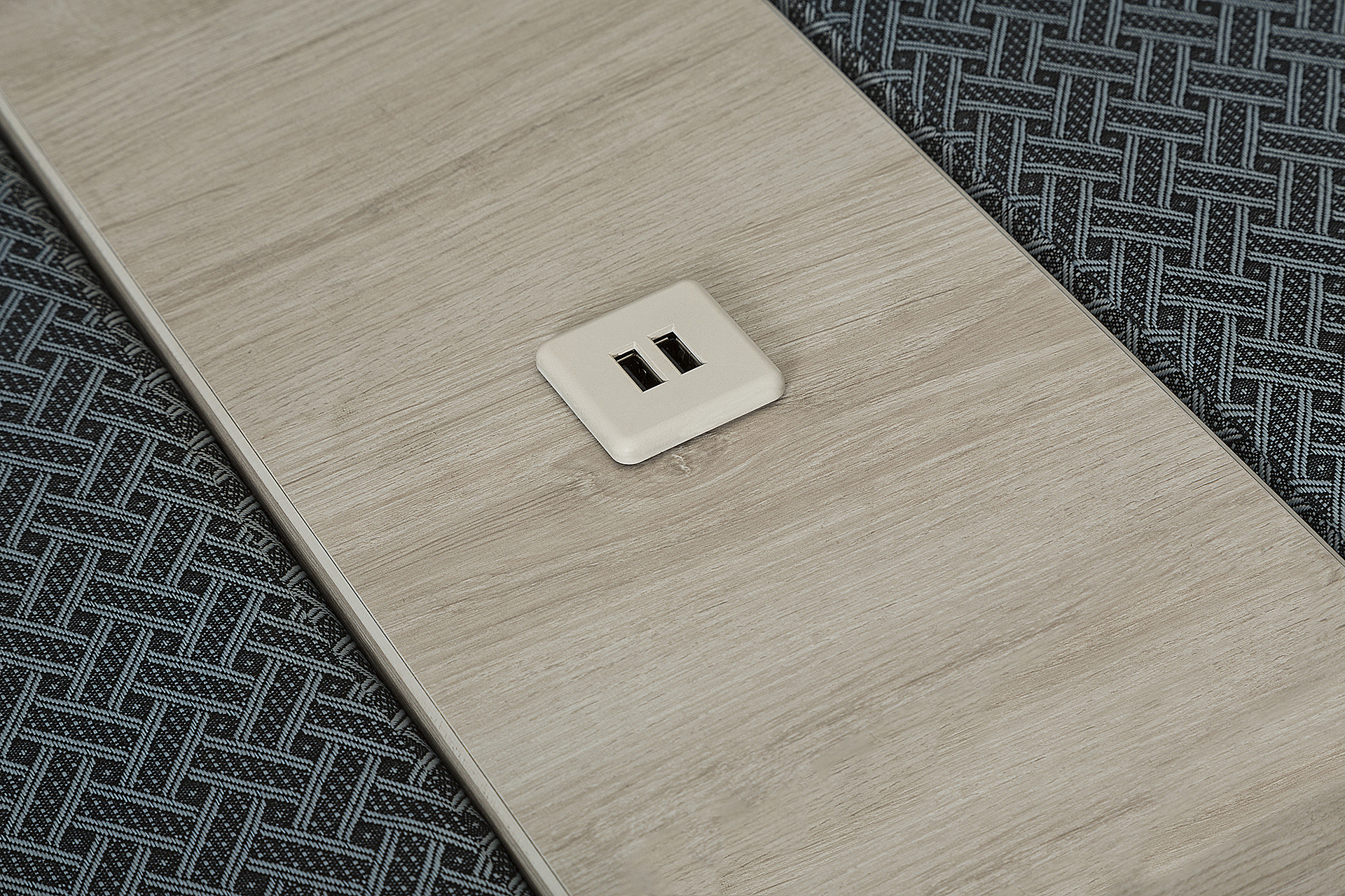 Estructura en madera de pino solida de 21 mm. de primera calidad, estructura ligada con bandastic, rafia entretejida al resorte y bastidor para mayor firmeza, base tubular cuadrada de 1½” cromada o pintada, tapizado en variedad de colores (consultar catalogo tapices), hule espuma en asiento y respaldo de 8 cm. de espesor, d.20 kgs/m³, cubierta de melamina de 16 mm. con conector de usb.